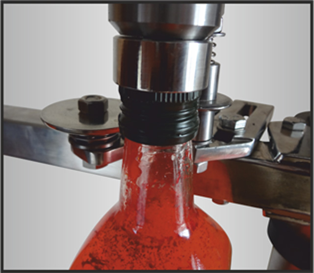 Dolum hattından gelen şişelerin metal kapaklarının sıvanarak kapatılması işlevini yerine getirir. Manuel ya da otomatik olarak üzerine kapakları konmuş olan şişeler kapak kapama ünitesine girer. Pnömatik itici ile taşıyıcı banttan sıvama ünitesinin altına aktarılır. Burada kapakları sıvanan şişeler tekrar taşıyıcı banda geçirilerek işlem tamamlanır. Makinanın tüm şasesi ve kullanılan malzemeler krom olarak imal edilmiştir.