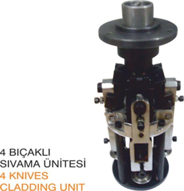 Metal kapakların şişelere sıvanarak kapatılması amaçlı üretilen kapak kapama makinalarında 4 bıçaklı sıvama ünitesi kullanılmaktadır.